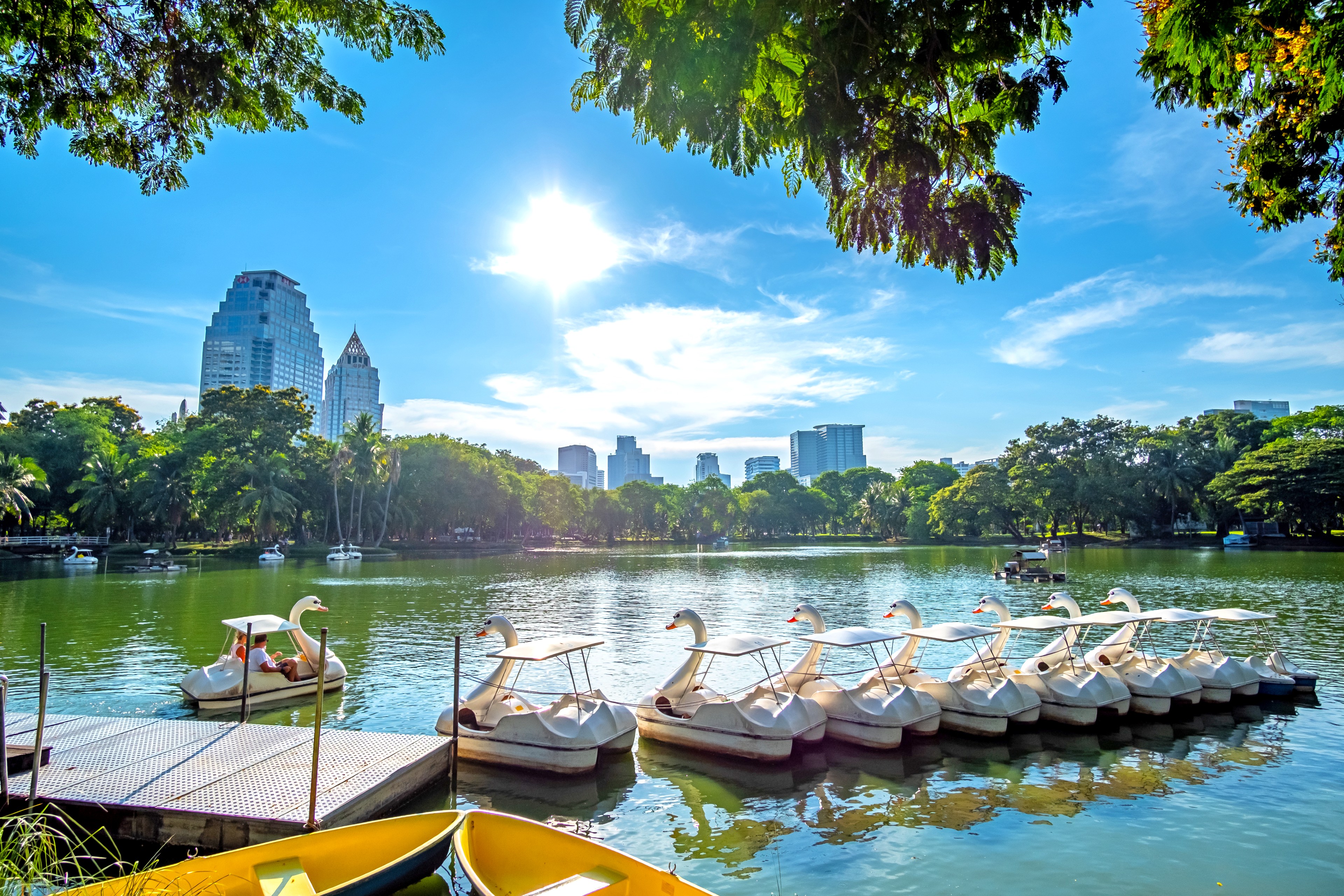 Lumpini Park offers 142 acres of grass, trees, and lakes in central Bangkok. Morning brings tai chi practitioners and joggers who circle the park's 2.5-kilometer path. Evening draws families for picnics and free aerobic classes.